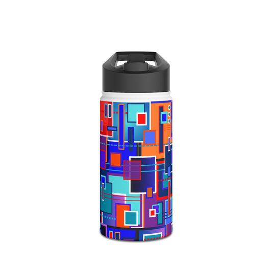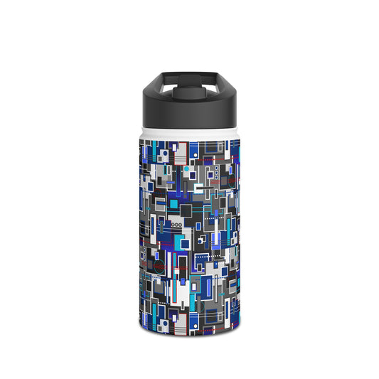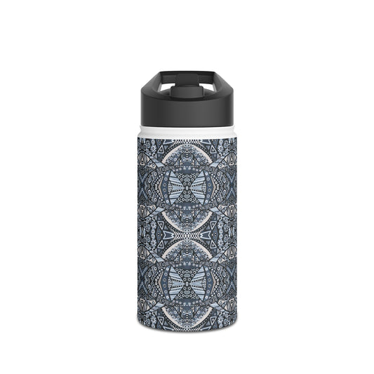 Slim Water Bottle - No. 262 - Blue, White Navy Geometric - By Irish Artist Fiona de Lacy