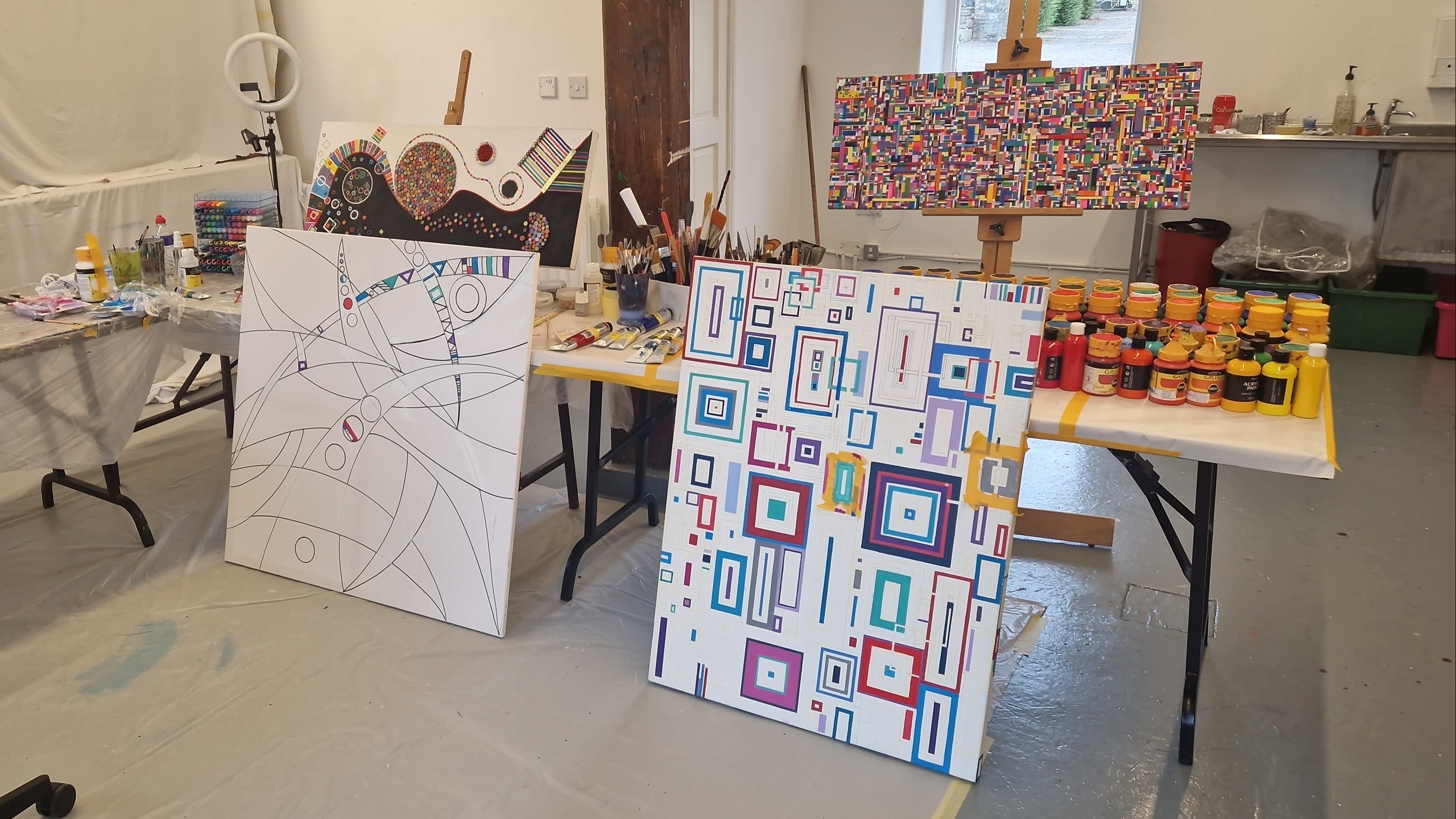 Yes, that's me, making a rare appearance on camera. I had just finished working on my painting Fractured which is made up of hundreds of miniture abstracts, hidden inside this piece is a miniture painting by another Dublin Artist... Dara Dunne.