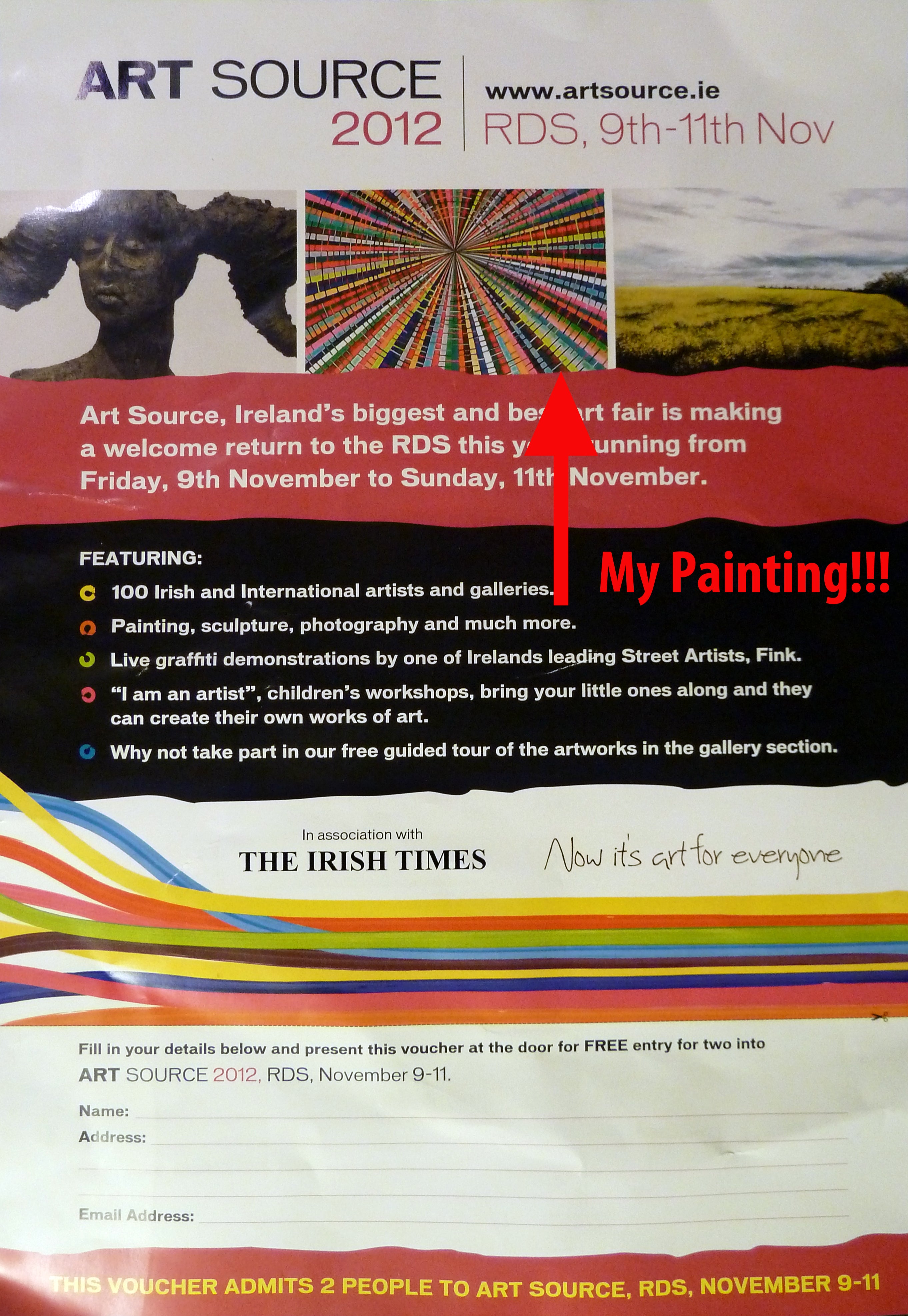 My painting Spectrum was highlighted in the Irish Time Newspaper in their advertisment for the RDS Art Source Exhibition in November 2012