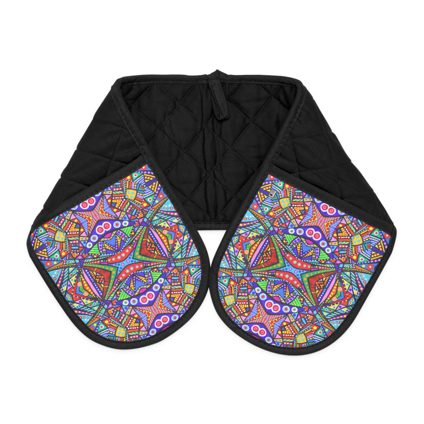 Nothing's too hot for these oven mitts designed by Irish Artist Fiona de Lacy. Featuring a poly print area and cotton construction, these oven mitts are both slip-resistant and heat-insulated.