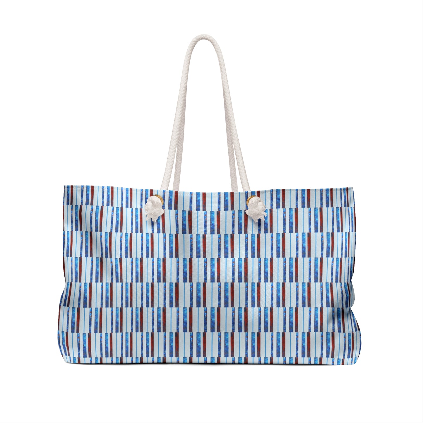 Our oversized Weekender Tote is perfect for your weekend at the beach or in town. The wide-mouthed, durable bag holds a generous amount of personal items and is easily held by its thick rope handles.